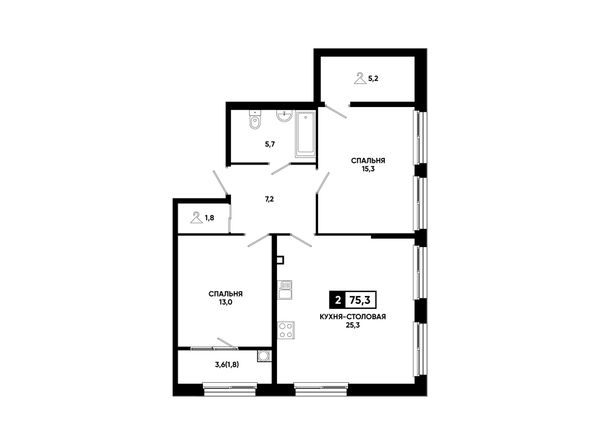 1-комнатная — 75,3 м²
