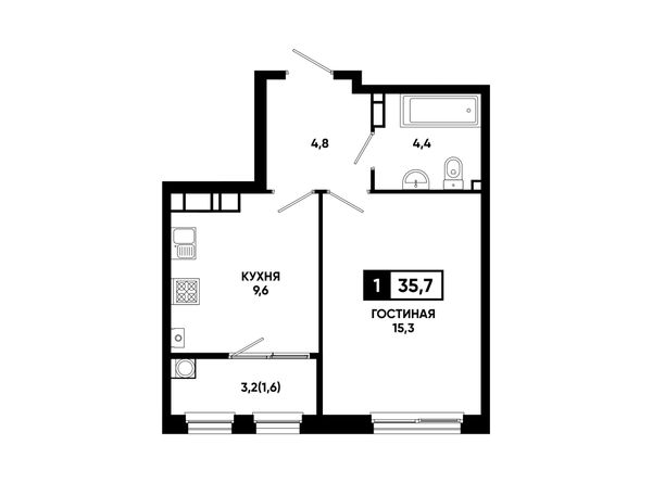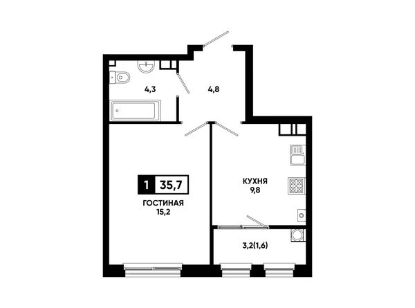 1-комнатная — 35,7 м²