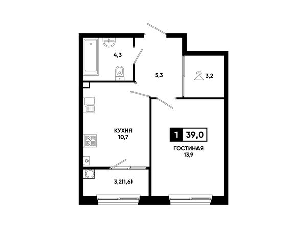 1-комнатная — 39 м²
