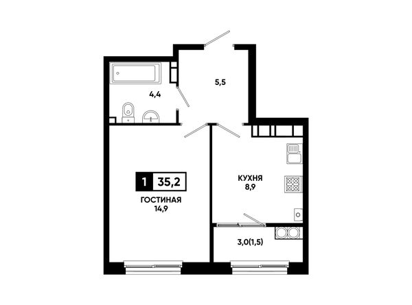 1-комнатная — 35,2 м²