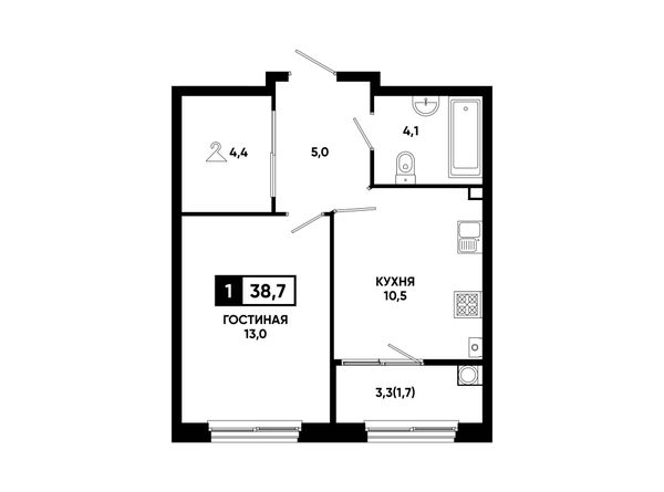 1-комнатная — 38,7 м²