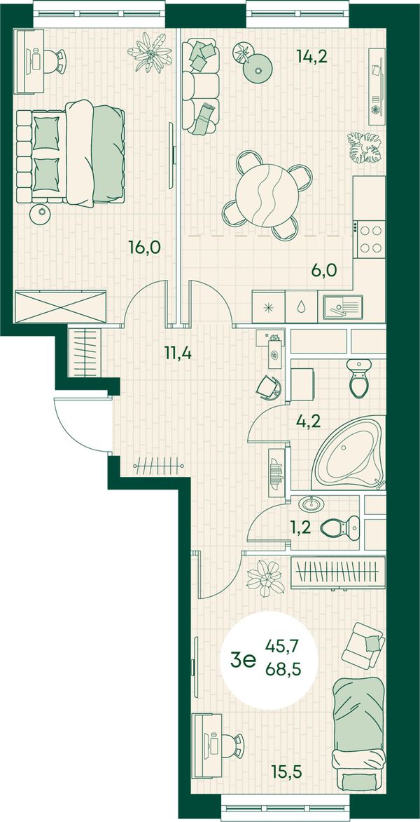 3-комнатная — 68,5 м²