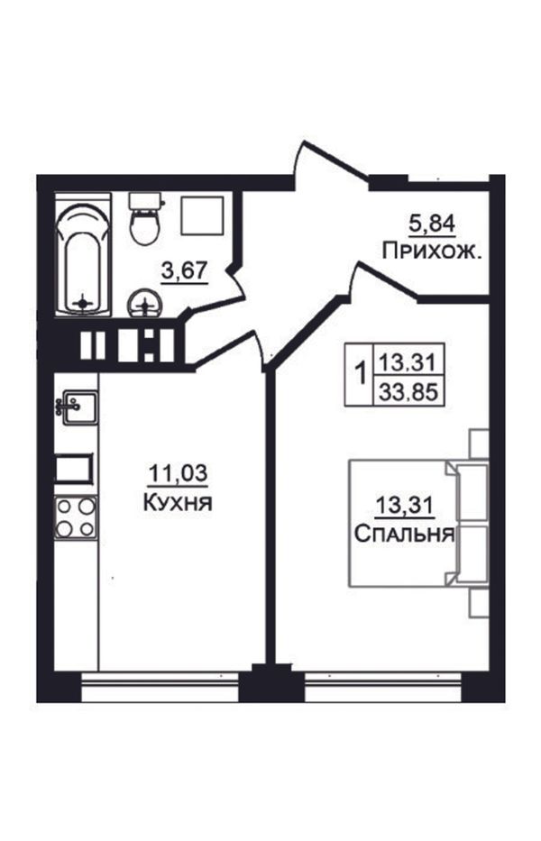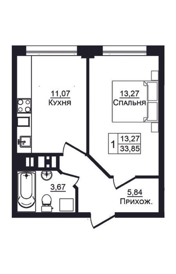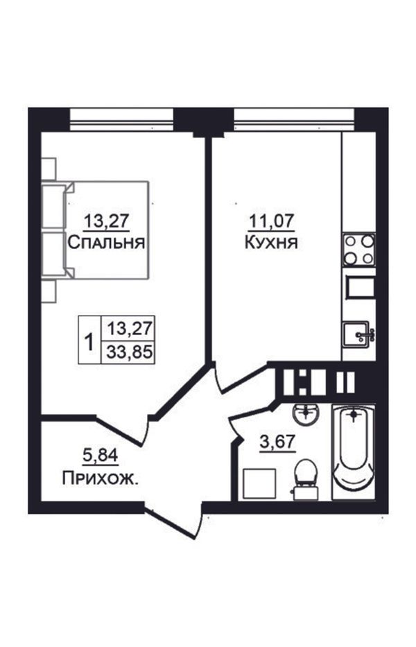 1-комнатная33,85 м²Республика Адыгея (Адыгея), посёлок городского типа Яблоновский, Луговая улица, 7А