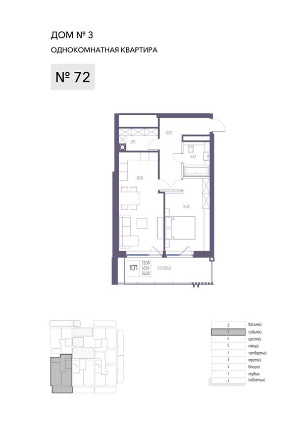 1-комнатная — 63,51 м²