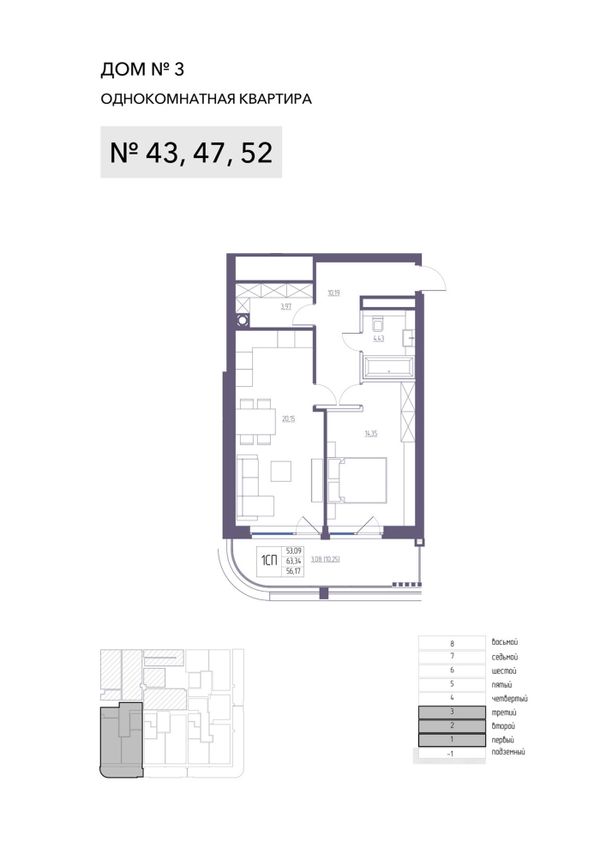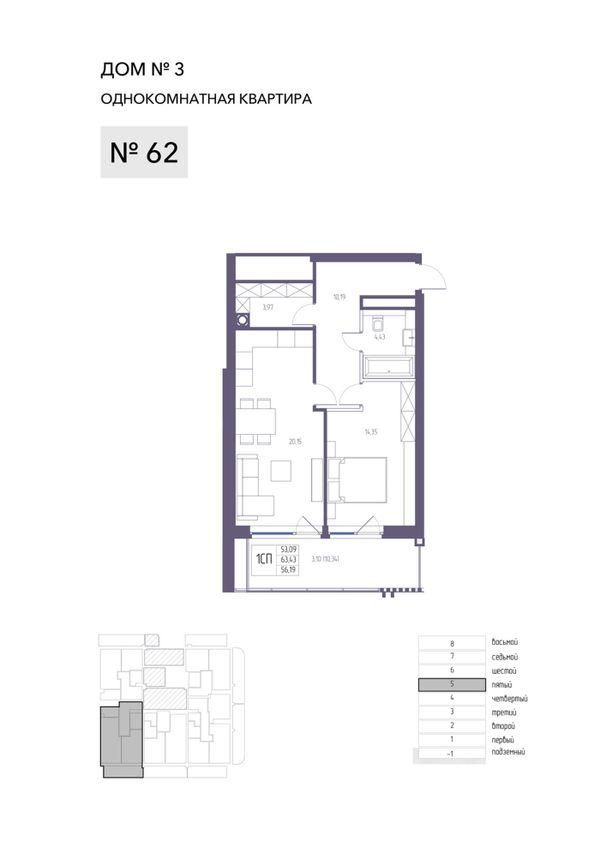 1-комнатная — 63,43 м²