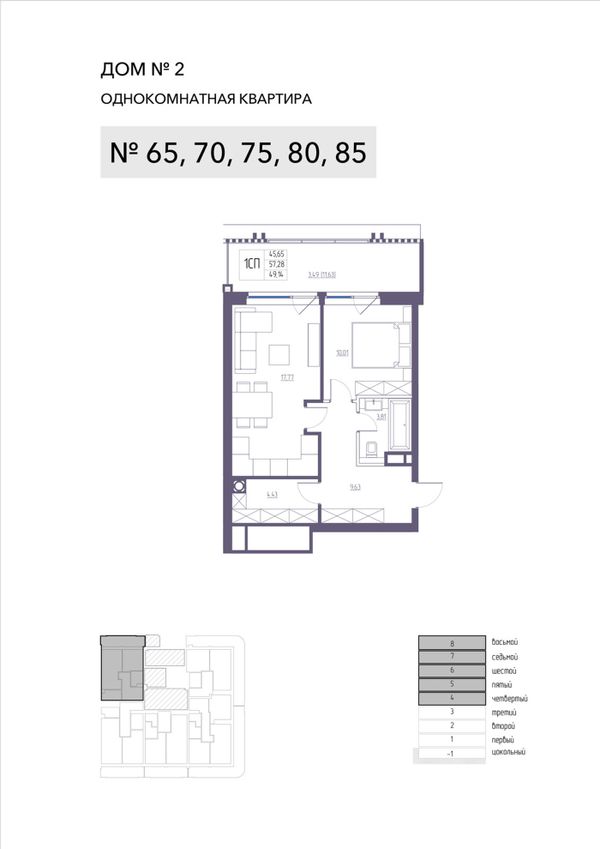 1-комнатная — 57,28 м²